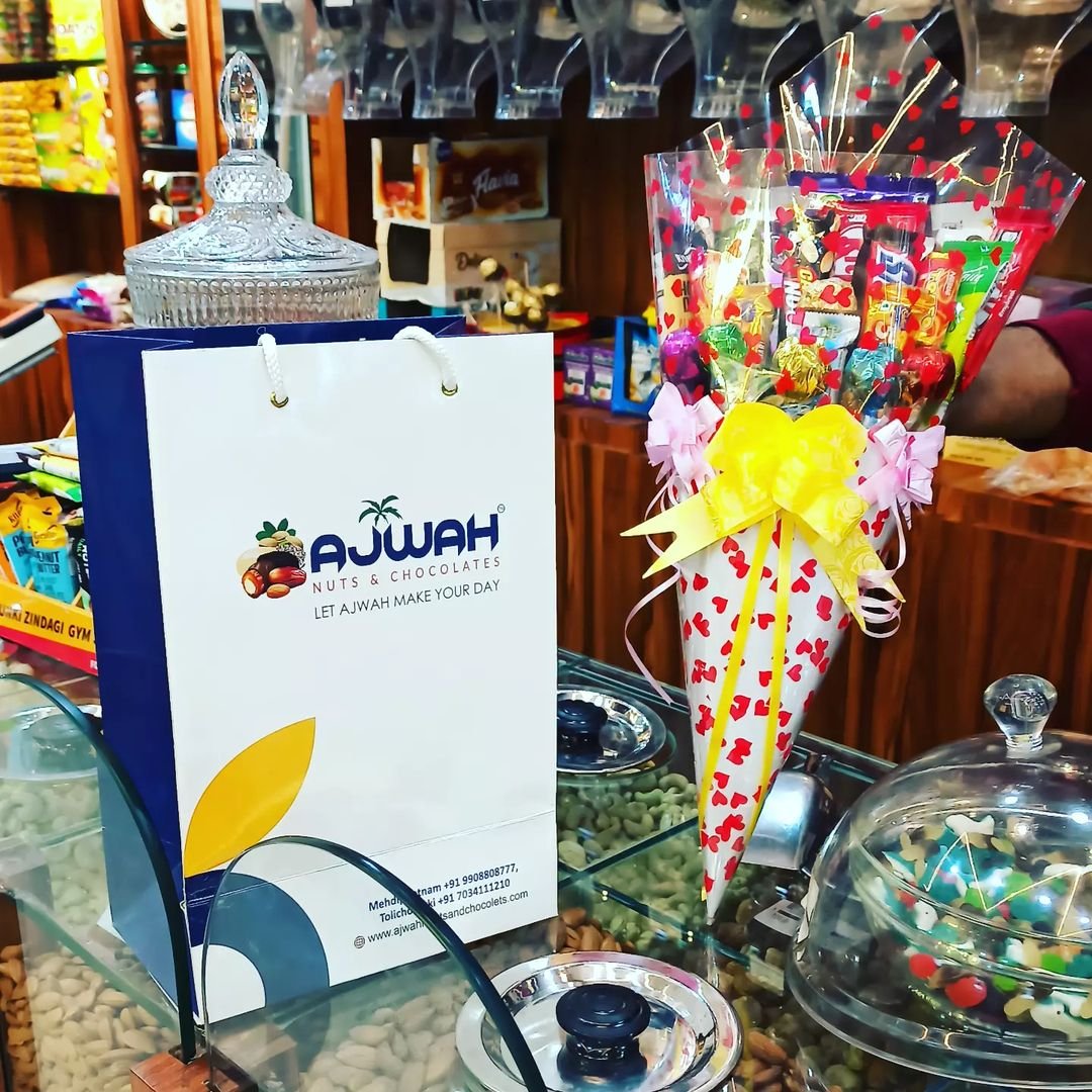 At AJWAH NUTS & CHOCOLATES, we specialize in making every moment a little sweeter. Our premium range of chocolates and freshly roasted nuts are crafted with care to deliver a taste of joy in every bite.